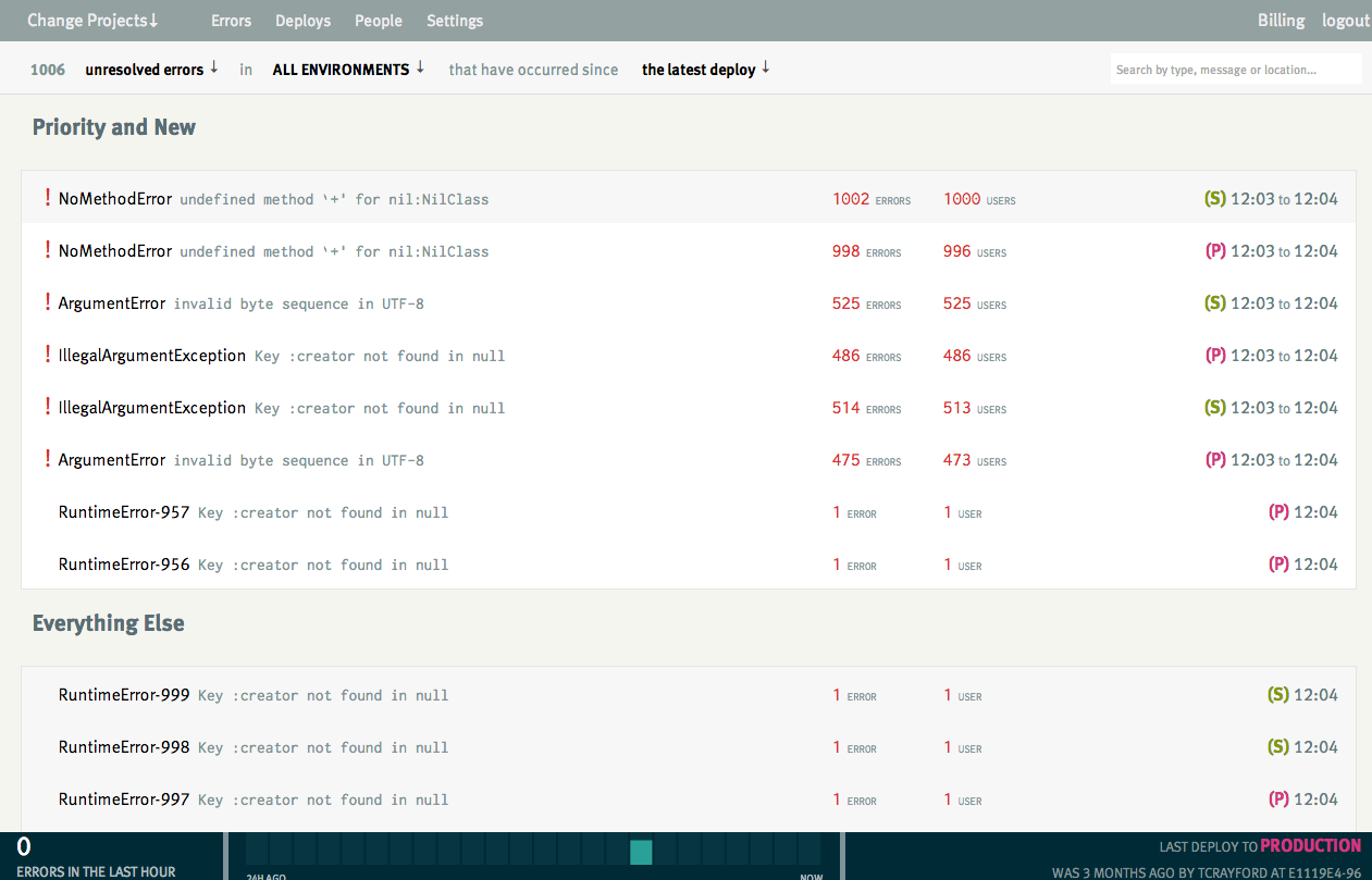 Check it out. Yeller’s dashboard lets you drill down to the errors that matter the most, and once you start fixing an error, Yeller will give you the best error diagnosis tools out there.